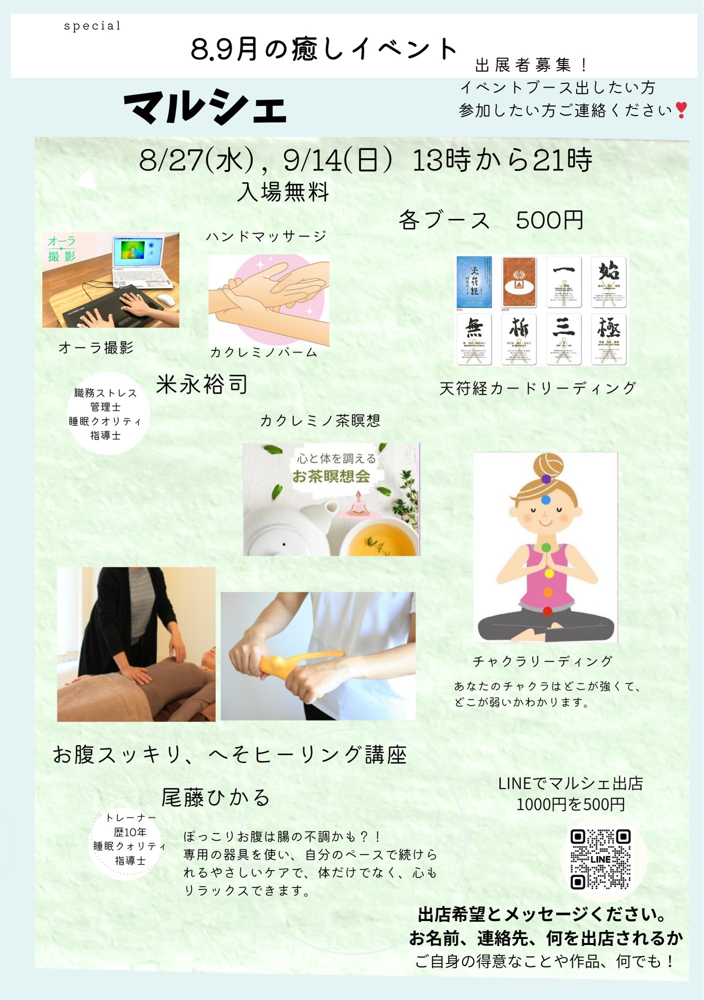 癒しマルシェ、オーラ撮影、陰陽五行、天符経タロット、